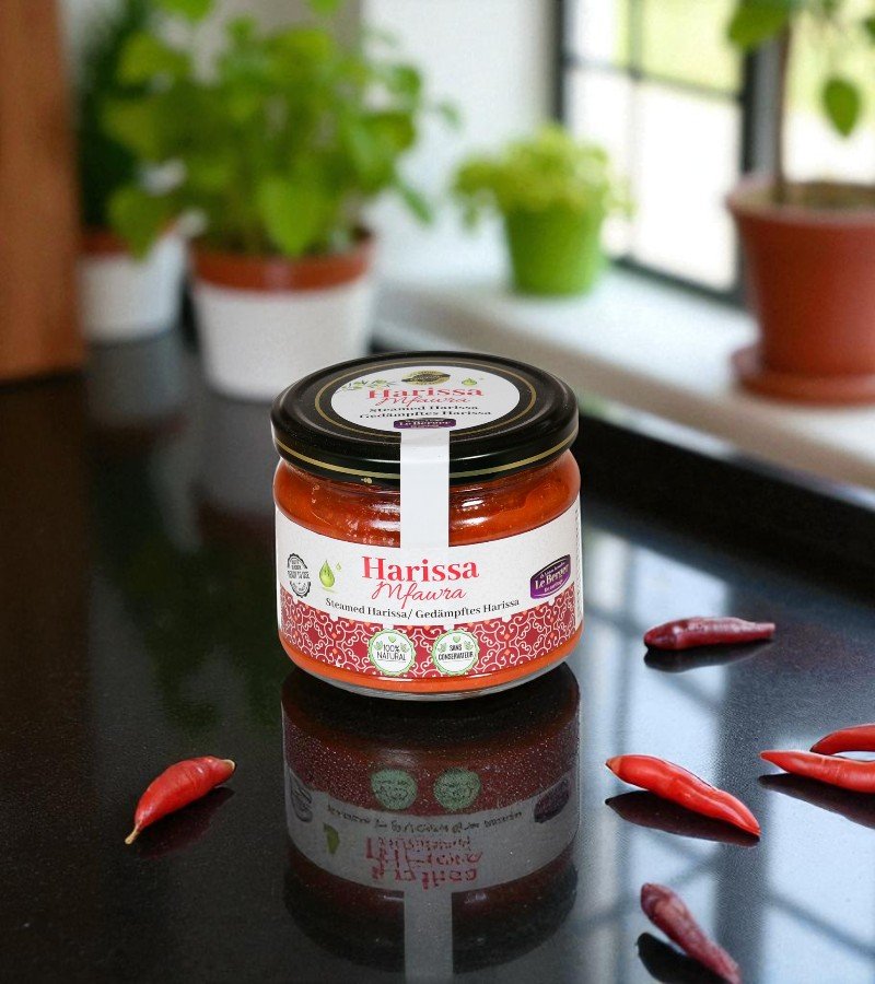 Nos créations sont l’expression généreuse et parfumée de la Méditerranée. Nous travaillons avec des ingrédients emblématiques tels que l’huile d’olive extra vierge, les piments rouges séchés au soleil, les herbes aromatiques et les céréales locales. Chaque produit est conçu pour éveiller les sens, offrir une explosion de saveurs et rappeler la chaleur du soleil tunisien. Goûter à nos produits, c’est savourer l’intensité des épices, la fraîcheur des herbes de nos jardins et la douceur veloutée d’une huile d’olive pressée à froid.