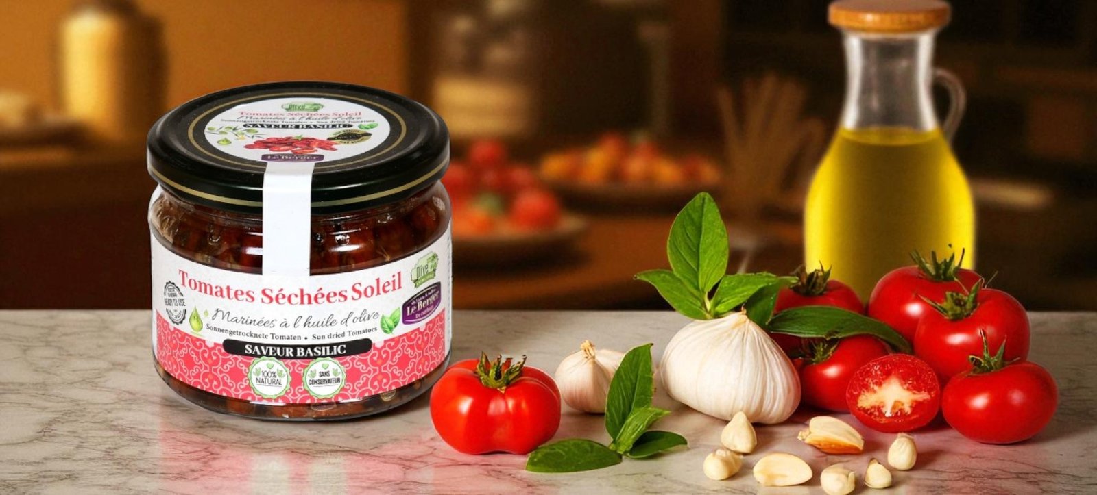 Introduction Véritables concentrés de soleil, les tomates séchées tunisiennes sont l’une des spécialités les plus appréciées de la cuisine méditerranéenne. À Nabeul, elles sont séchées naturellement au soleil avant d’être marinées dans une huile d’olive extra vierge parfumée aux herbes. Chez Le Berger, nous proposons deux