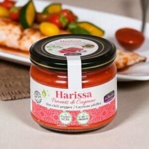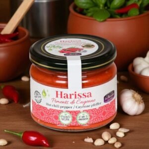 Originaire de Nabeul, capitale du Cap Bon, cette harissa au piment de Cayenne allie intensité et authenticité. Son goût relevé est adouci par l’huile d’olive extra vierge tunisienne, offrant une touche méditerranéenne unique. Préparée selon la tradition, sans conservateurs.